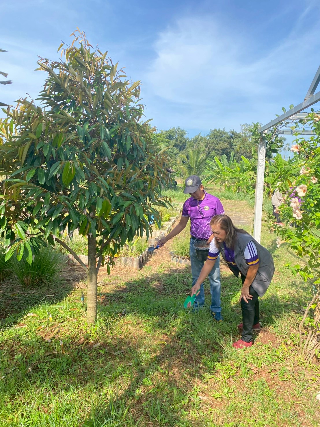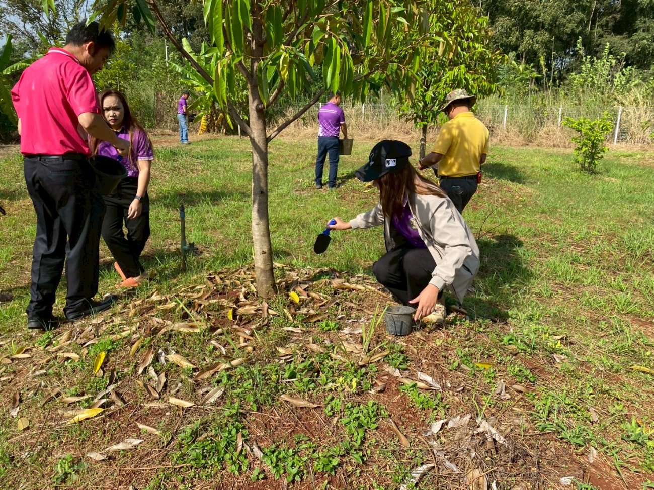 ความหวงแหนทรัพยากรป่าไม้ของชาติ โดยร่วมกันบำรุงรักษาต้นไม้ ด้วยการพรวนดิน ใส่ปุ๋ย และตัดแต่งกิ่งไม้ ในพื้นที่บริเวณแปลงเกษตร อบต.เสิงสาง