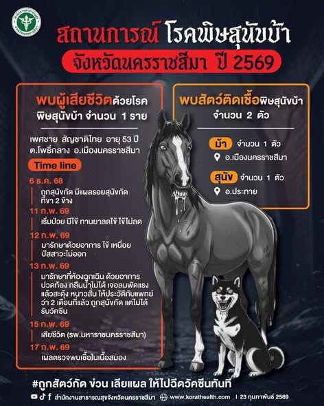 ภาพที่เกี่ยวข้อง องค์การบริหารส่วนตำบลเสิงสาง ประชาสัมพันธ์ "สถานการณ์ โรคพิษสุนัขบ้า จังหวัดนครราชสีมา ปี 2569"