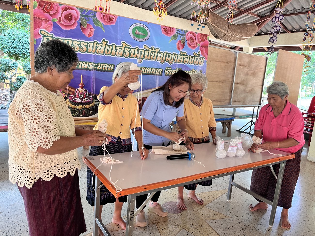 กิจกรรมส่งเสริมภูมิปัญญาท้องถิ่น (ทำลูกประคบ) ตำบลเขาพระนอน อำเภอยางตลาด จังหวัดกาฬสินธุ์